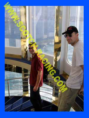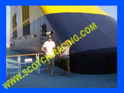 Se tremper les pieds dans la piscine. Problème technique le bateau n'arrivera qu'à 23H a toulon nous débarquons sous un feu d'artifice et les applaudissements de la foule: ça fait plaisir! Direction Saint Etienne que nous ralliront vers 4h50 soit 30H environ de voiture et de bateau pour 1700km aller retour: pas mal non? On est un peu fatigué et on laisse la voiture sur le plateau |