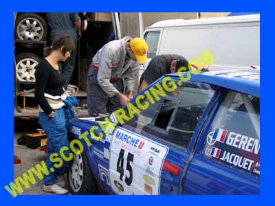 paiera et la R11 retrouve son souffle. Les ES défilent, la 106 file bon train. A son tour, l’alternateur de l’R11 claque, rapide changement, vérificateur des connections et c’est reparti… heureusement car la nuit approche (photo69-70-72-75-78). |